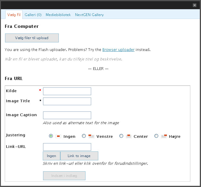 Indsæt billeder i Indlæg